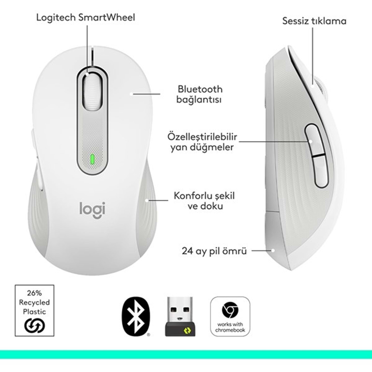 LOGITECH M650 Kablosuz Beyaz Mouse 910-006238