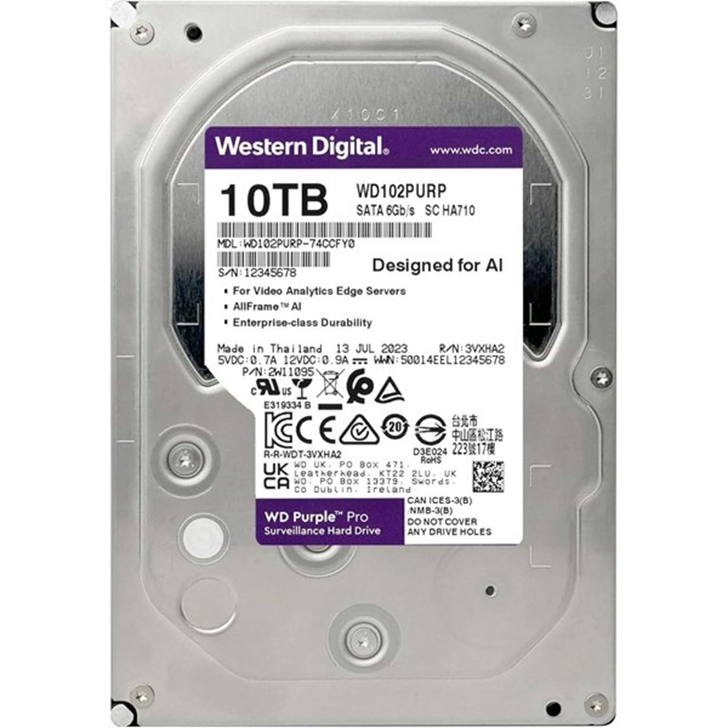 WD 10TB PURPLE PRO WD102PURP 512MB 7200RPM SATA-3 GÜVENLİK DİSKİ