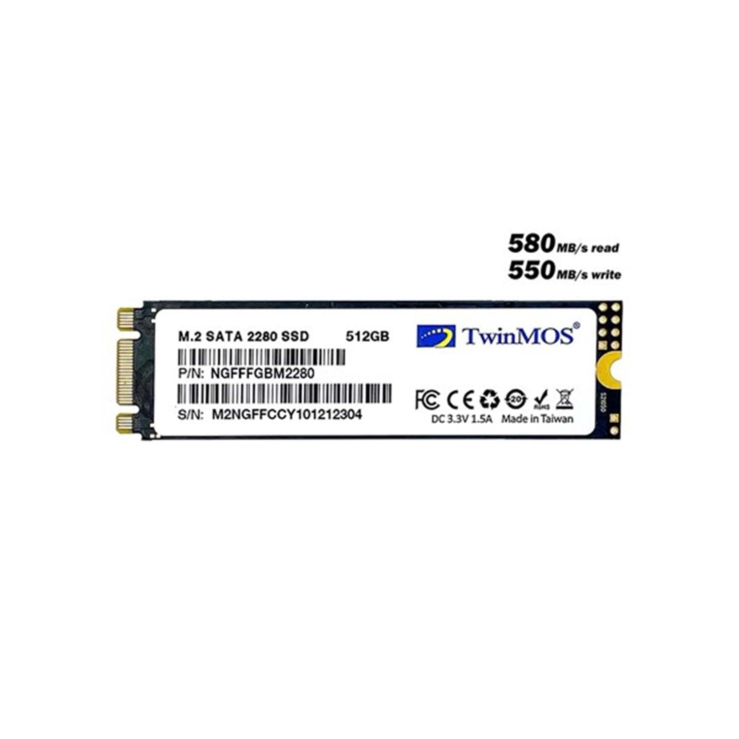TWINMOS 512GB NGFFFGBM2280 580- 550MB/s M2 Sata Disk