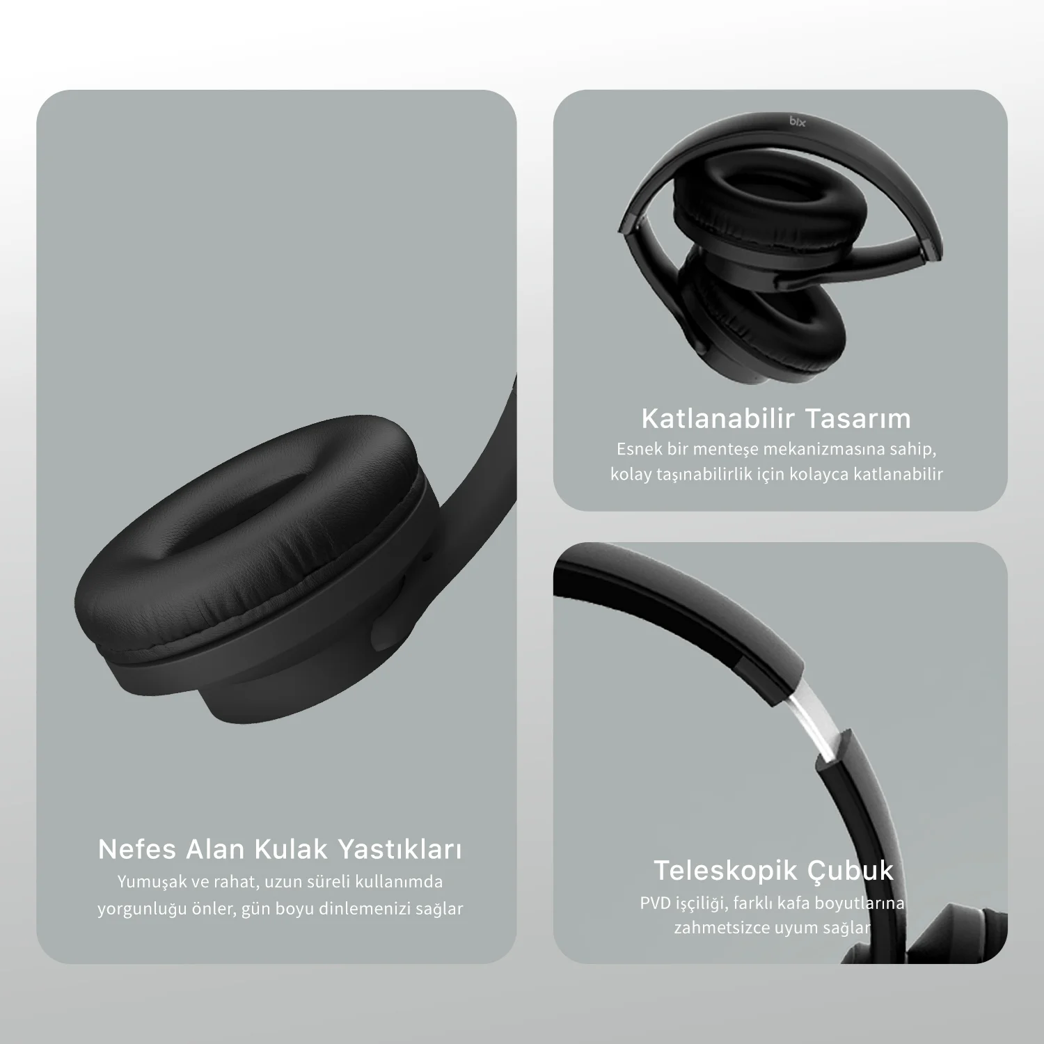 Bix BH2’nin en dikkat çekici özelliği, kulaklık yastıklarının dışarı doğru katlanarak hoparlör moduna geçebilmesidir. Kulaklık olarak kullanırken sizi dış dünyadan izole eden Bix BH2, hoparlör moduna geçtiğinizde ise bulunduğunuz ortamı müzikle doldurur. Böylece hem bireysel dinleme deneyimlerinizi hem de toplu eğlenceleri tek bir cihazla yönetebilirsiniz. Katlanabilir yapısı, ürünü taşınabilir kılarak her an yanınızda bulundurmanızı sağlar.