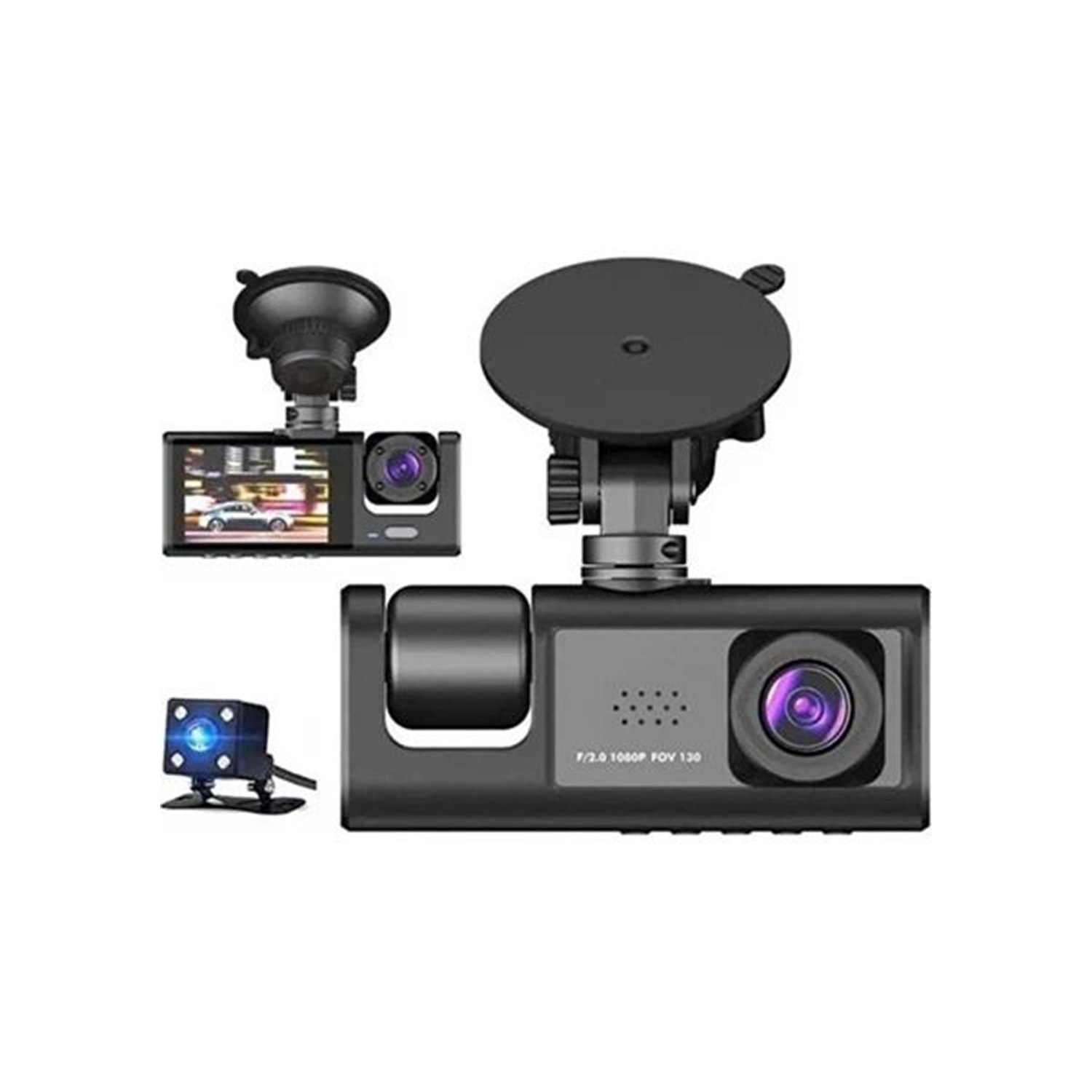Daytona Carboon T717 araç içi ön+arka+iç kayıt kamera