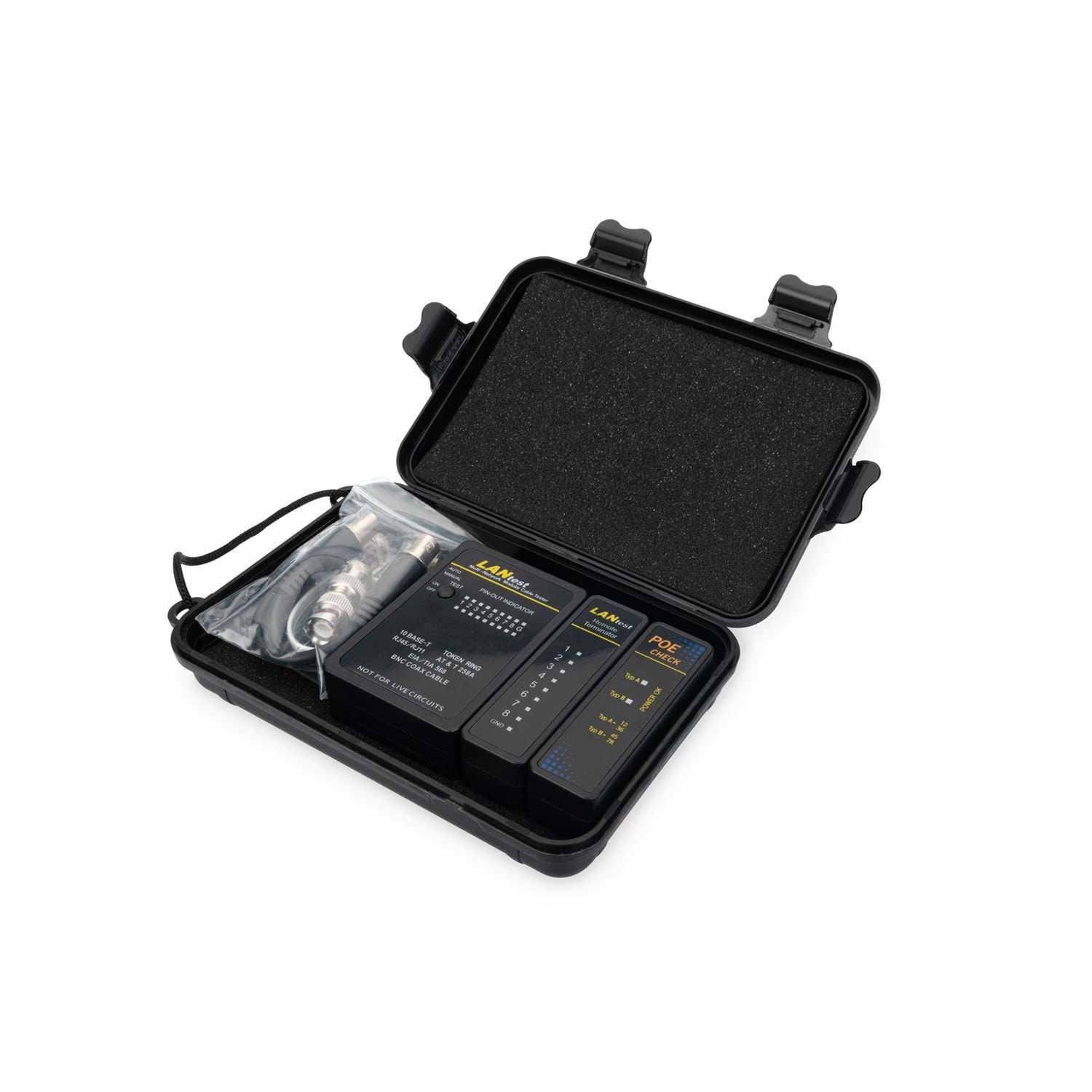 Test Edilebilir Kablolar: RJ-45, BNC Kablolar. Ergonomik ve elde rahat taşınabilir tasarım.
