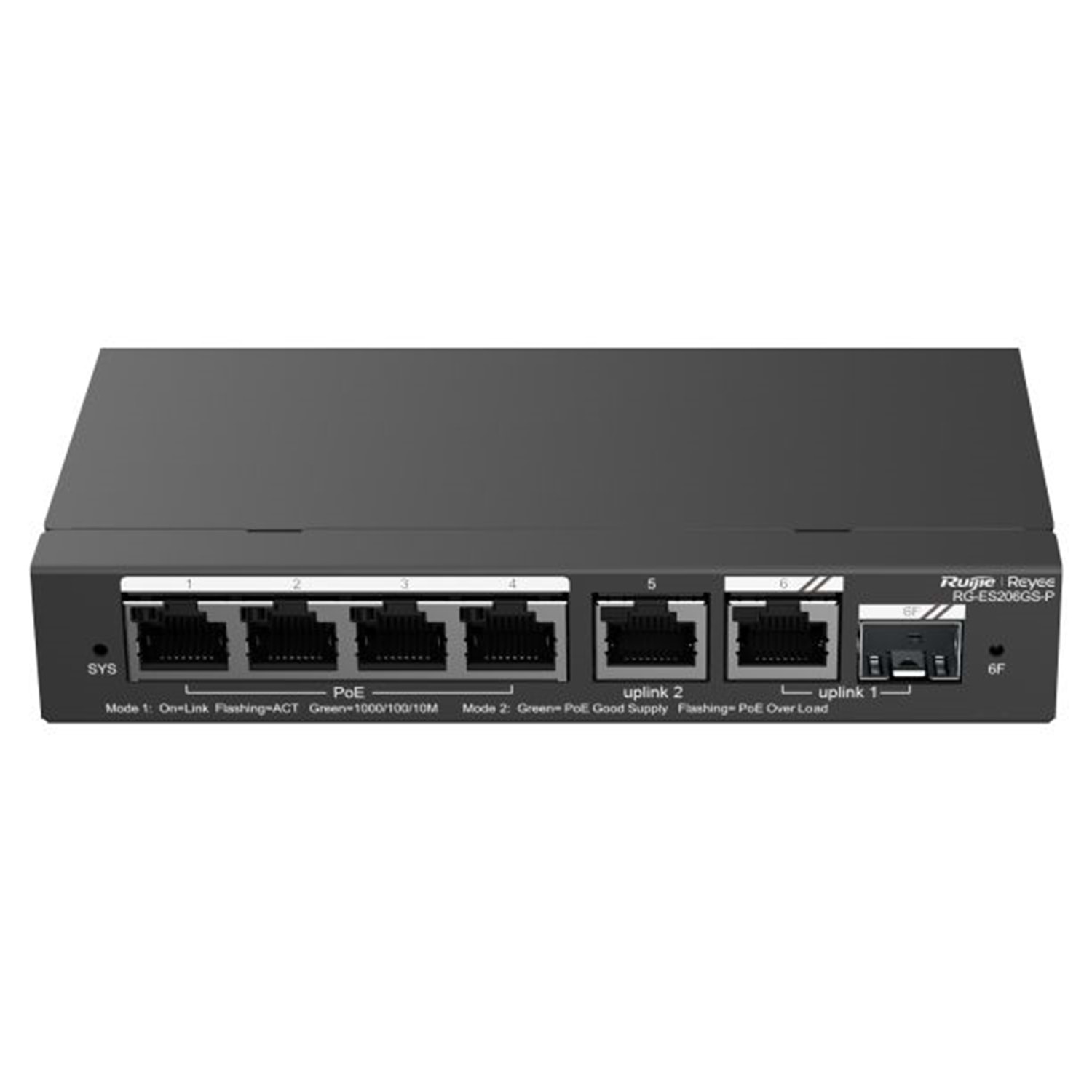 Ruijie Reyee RG-ES206GS-P 6 Portlu, 10/100/1000 Gigabit, Yönetilebilir Switch, 1 Gigabit Uplink, 1 Gigabit Combo, 4 Port PoE+