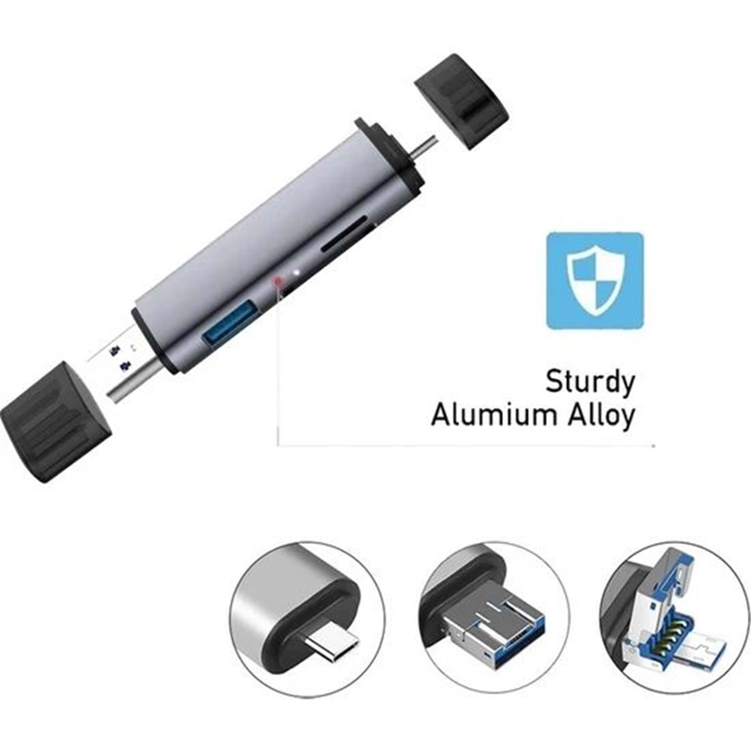 Daytona ADS-307 3'lü OTG kart okuyucu (Giriş:USB+Micro USB+Type-C => Çıkış:SD+Micro SD)